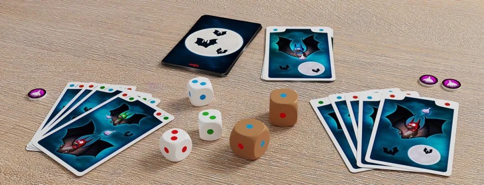 ¿Quién será el vampiro-murciélago que se deshará más rápido de todos sus ajos? Por turnos lanzamos los dados y con el resultado de los mismos intentamos deshacernos del mayor número de las cartas que tenemos en la mano. Quien se deshaga primero de sus cartas gana la ronda y una cabeza de ajos. Gana la partida quien logre reunir 3 cabezas de ajos primero.