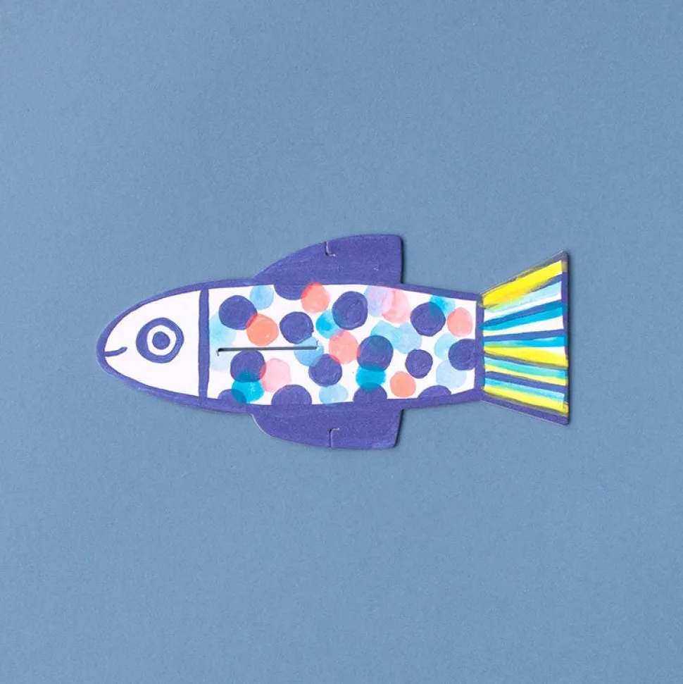 9 cartulinas de peces y pájaros para pintar con acuarelas. ¡Crea un móvil y decora cualquier rincón! Una actividad de manualidades sostenible y de proximidad.