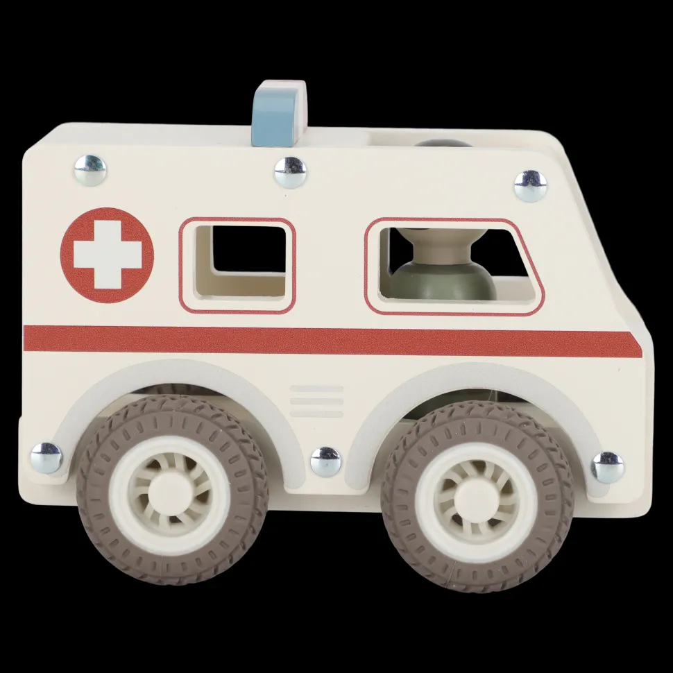 ¡Sirena, hora de ayudar! Esta ambulancia de madera con ruedas de goma transporta rápidamente a los pacientes al hospital. Dentro hay espacio para un paciente y el set incluye una enfermera de madera. Conduce lo más rápido posible a urgencias, lleva al paciente adentro y cuida bien a todos. Esta ambulancia de juguete hace que el juego de roles sea aún más divertido. ¿Ayudarás a alguien a recuperarse hoy?