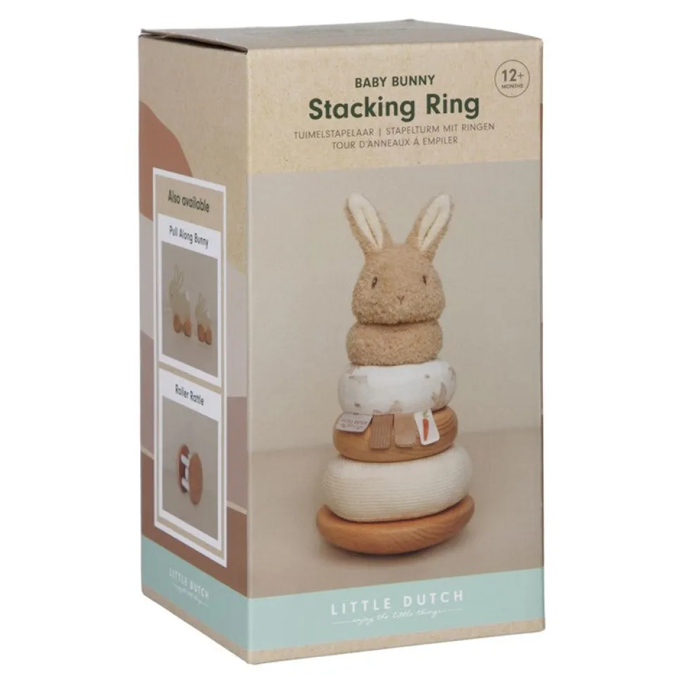 Los anillos apilables de Little Dutch de la colección Baby Bunny está especialmente diseñado para promover la coordinación ojo-mano de los niños mientras disfrutan del juego activo. Se anima a los niños a colocar los anillos de madera y tela en el orden correcto y apilarlos en la pirámide tambaleante. ¡Un desafío divertido para seguir intentándolo!.