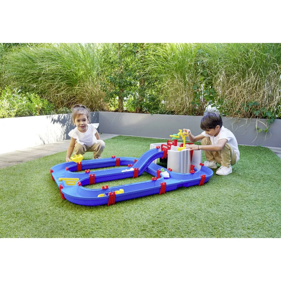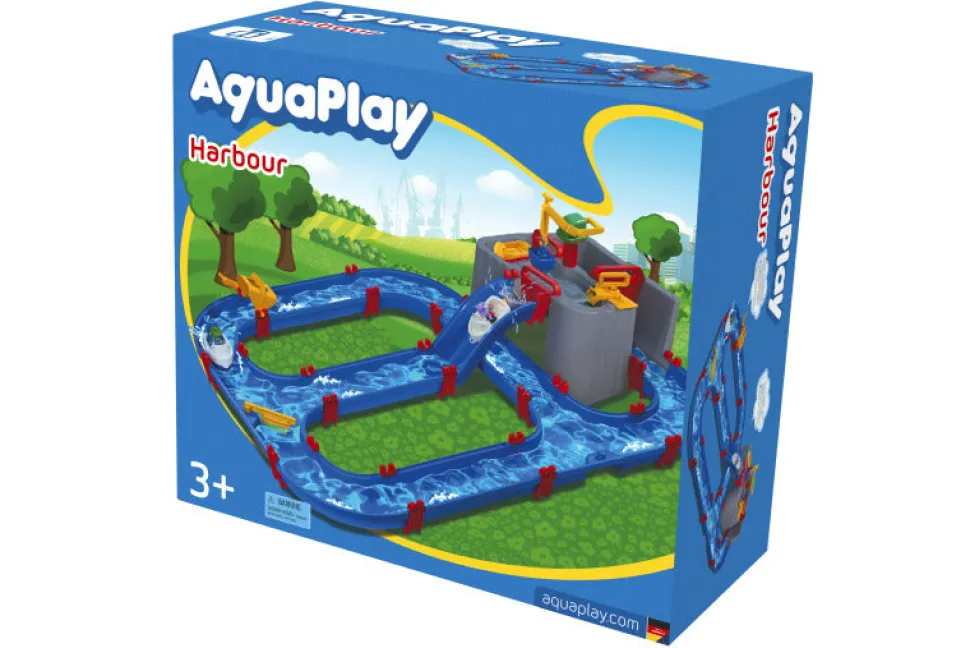 Emocionante estación acuática – La vía acuática del puerto con detalles lúdicos como una grúa, una potente bomba de agua y las compuertas impermeables y típicas de AquaPlay harán las delicias de los niños y niñas a partir de 3 años.