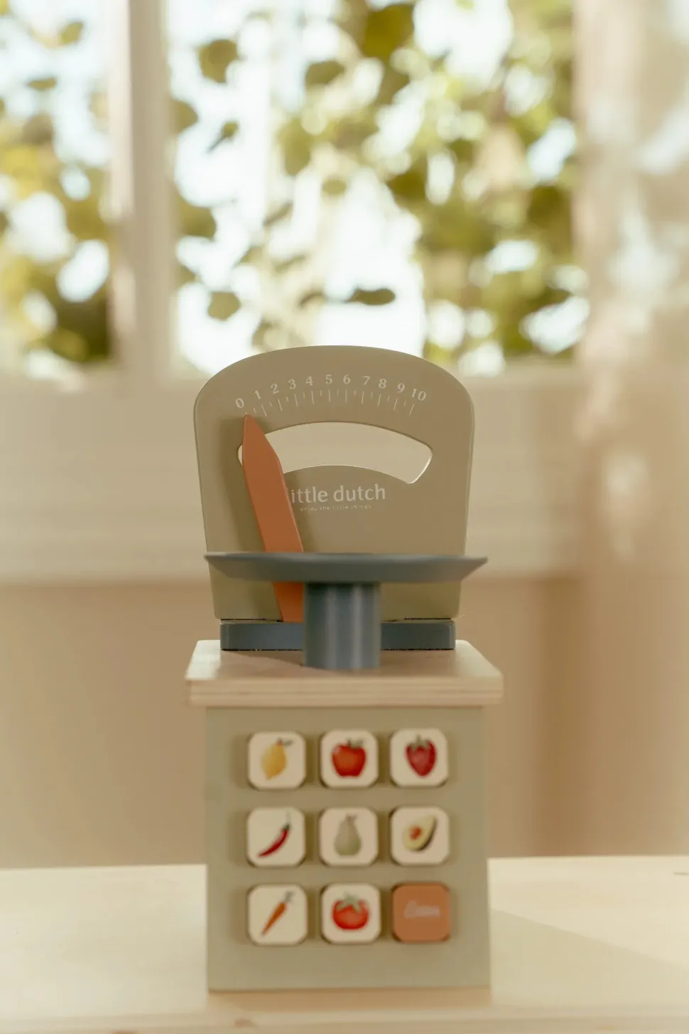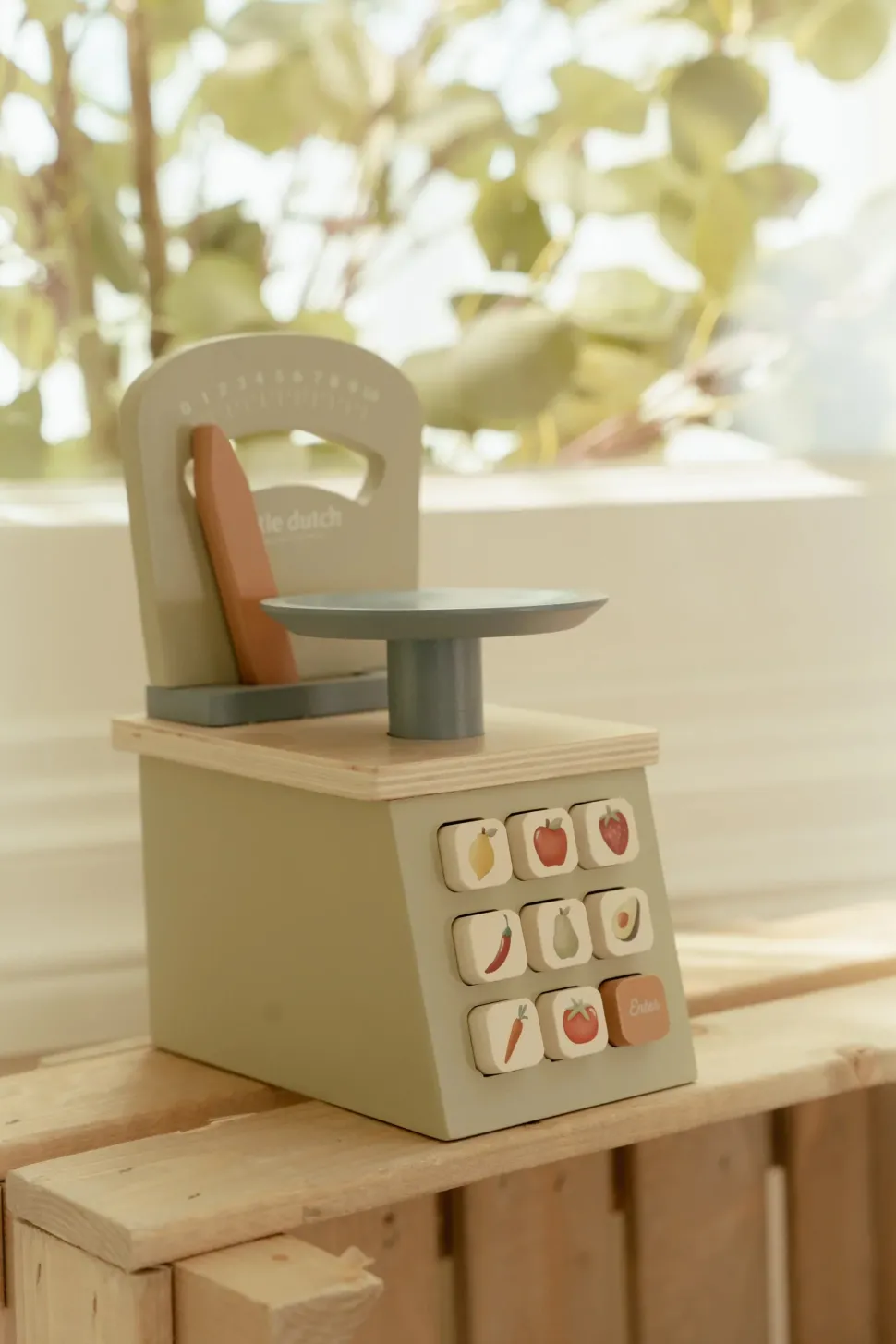 ¡Un ingrediente perfecto para cualquier cocinita! Con esta báscula de madera, los pequeños panaderos y chefs pueden pesar sus ingredientes con precisión. Coloca los productos en la báscula y observa cómo la aguja indica el peso. La báscula tiene botones reales con ilustraciones, lo que hace que jugar en la cocina sea aún más realista. ¡Perfecta para combinar con la cocina y el set de repostería para una diversión sin límites!
