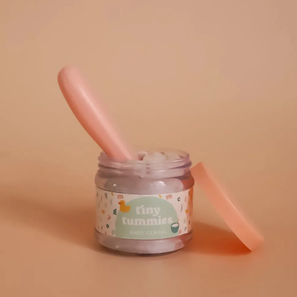 Alimenta a tu muñeca con el potito mágico Tiny Tummies Baby Cereal y completa la diversión con el biberón mágico de leche