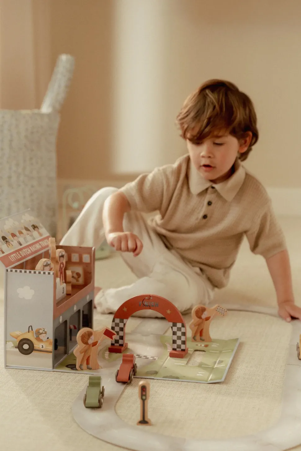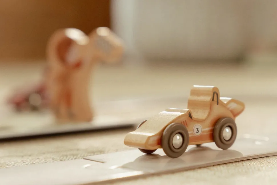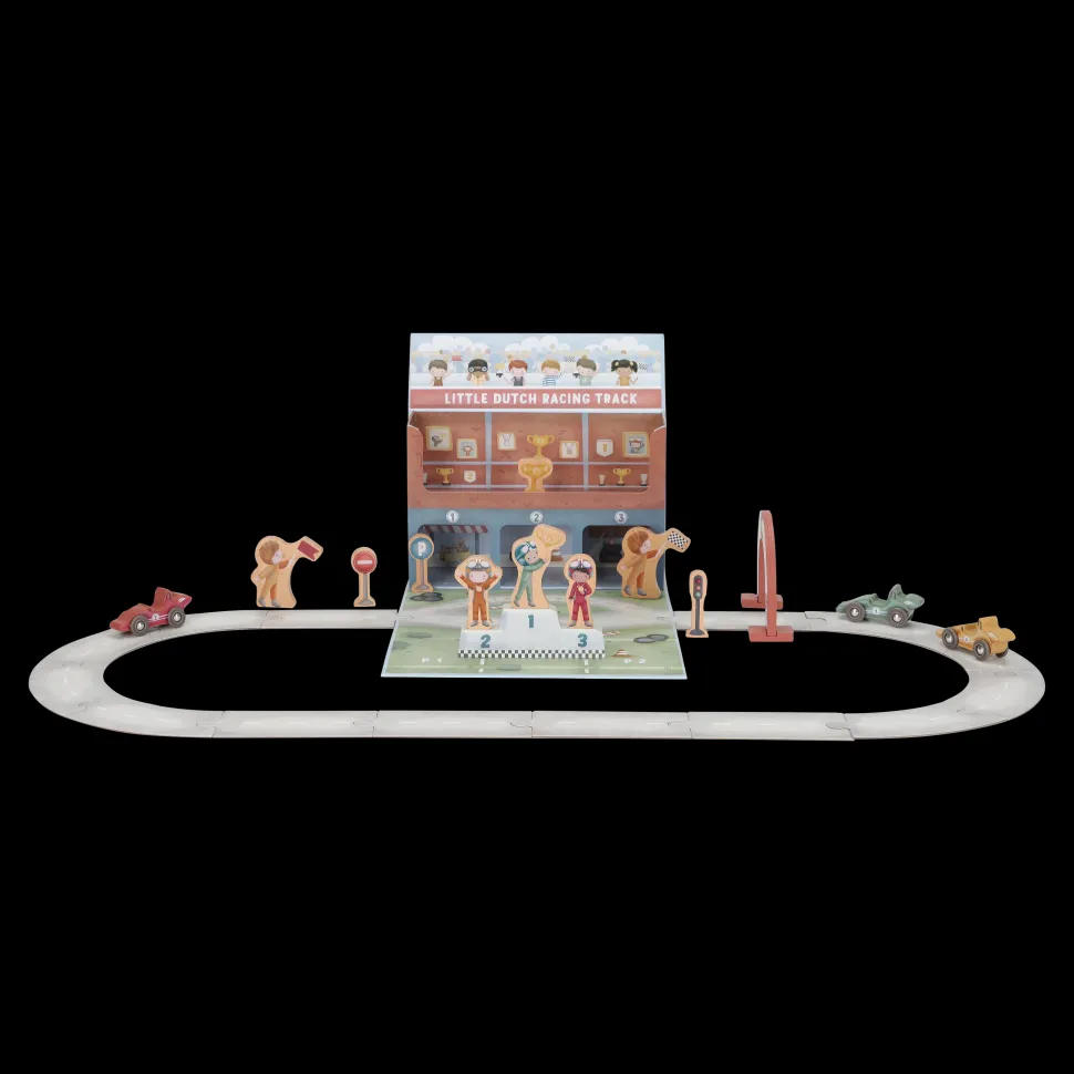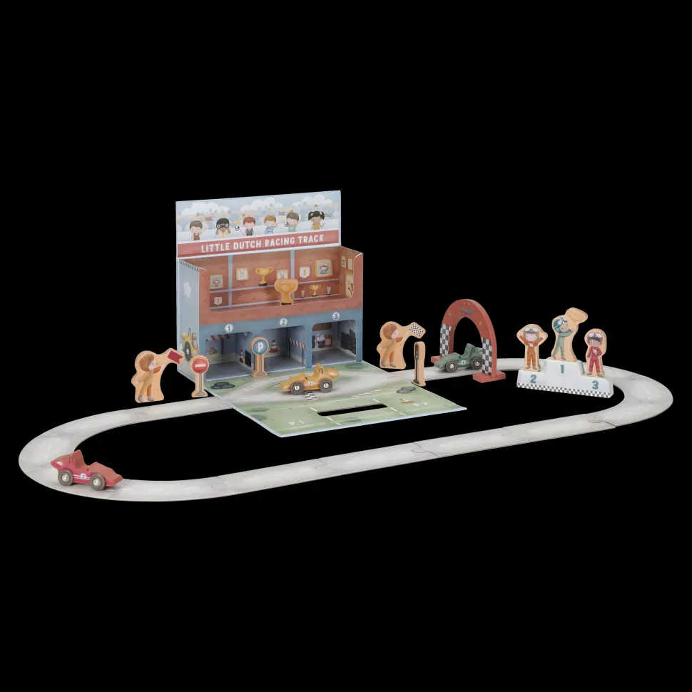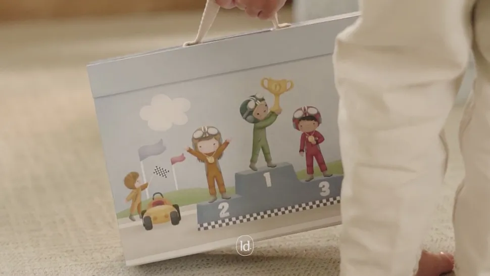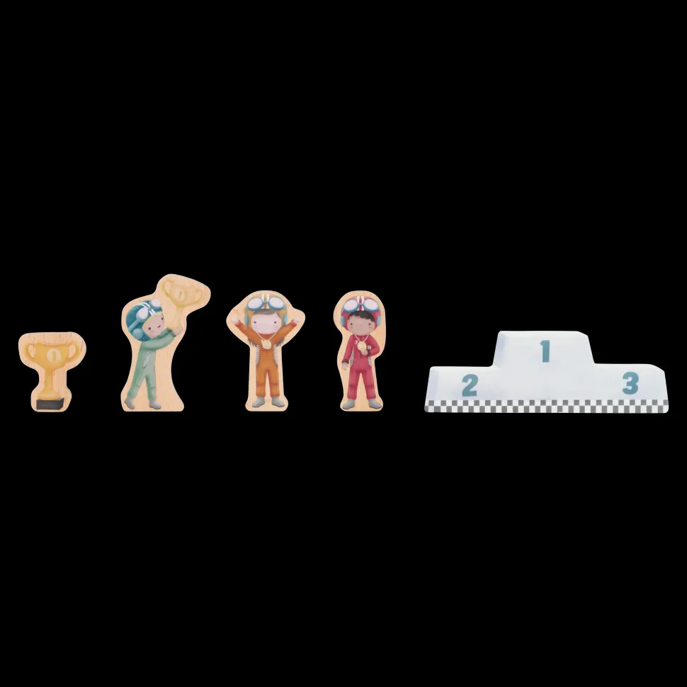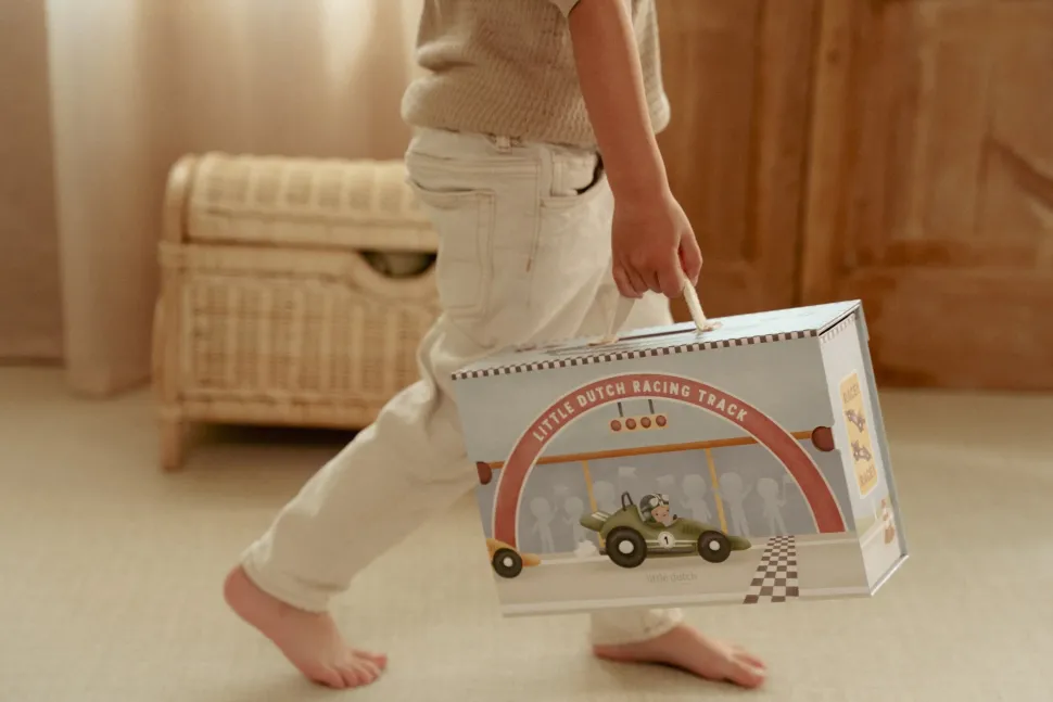 ¡Arranquen motores! Este estuche de cartón se transforma en una pista de carreras completa. El set incluye todo lo necesario para una carrera emocionante: coches de carreras, pilotos, una línea de meta, señales de tráfico, un trofeo y un podio de ganadores. La pista de cartón consta de piezas independientes que se ensamblan fácilmente como un rompecabezas. Después de la carrera, puedes guardar todo cuidadosamente en el estuche. ¿Listo para la siguiente carrera?