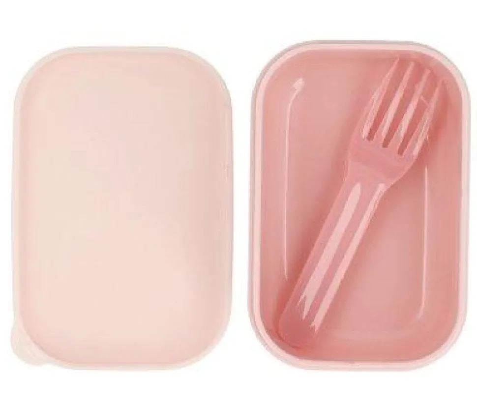 Esta pequeña cajita de fruta con tenedor, está pensaba para meter dentro de otra caja de almuerzo más grande y llevar la fruta o pequeños snacks separados del resto de almuerzo.