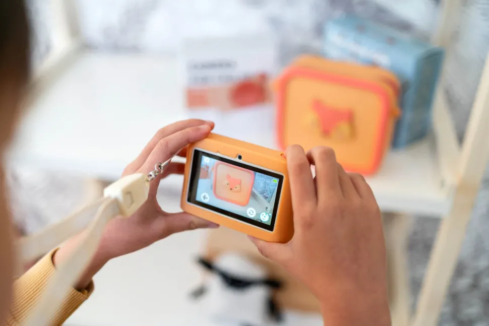 Su primera cámara. Esta cámara digital hace fotos y graba vídeo. La cámara digital infantil de The Zoofamily es extremadamente bonita, pequeña y liviana. Además, podrán imprimir sus fotos al instante, siempre que quieran.