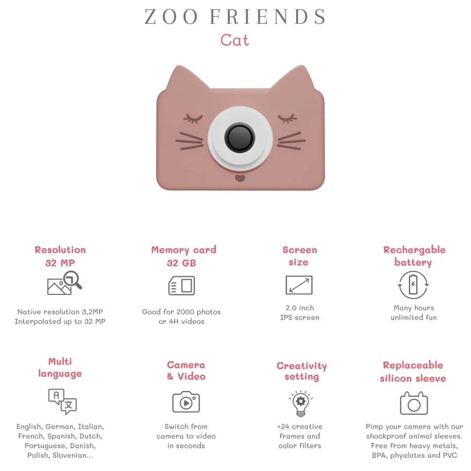 La Zoo Friends es una cámara digital con forma de animalitos ideal para los niños. Su cálida carcasa de silicona les anima a hacer fotos. La cámara está diseñada ergonómicamente para que las manos de los más pequeños puedan sujetarla y manejarla con facilidad.