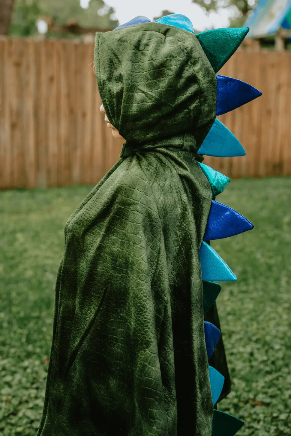 Esta fabulosa capa de dragón seguramente inspirará muchas aventuras de fuego con una capa de terciopelo texturizado con escamas y garras rellenas. Esta capa de dragón está hecha de suave terciopelo triturado que tiene varios tonos de verde para lograr el look de dragón perfecto. La tela incluso está diseñada con escamas, por lo que el efecto lo convierte en una gran capa de dragón. Los picos están forrados con espuma y diseñados para pararse solos. El cierre de velcro en el cuello hace que esta capa sea fácil de poner y quitar.