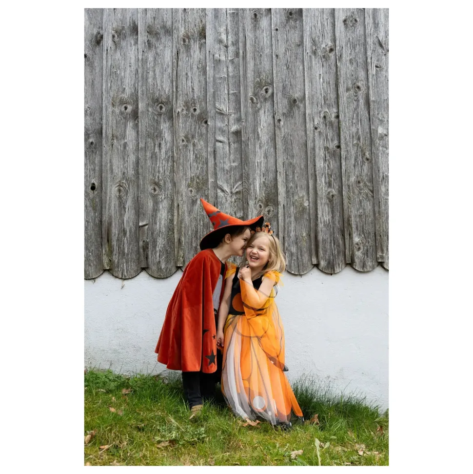 Conjunto de capa y sombrero de mago en tonos otoñales, perfecto para niños que quieren vivir aventuras mágicas con estilo y calidez.