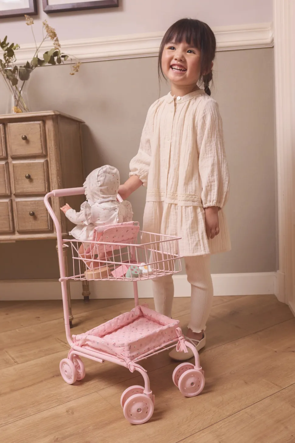 - Cesta superior amplia con asiento incorporado para muñecos y peluches