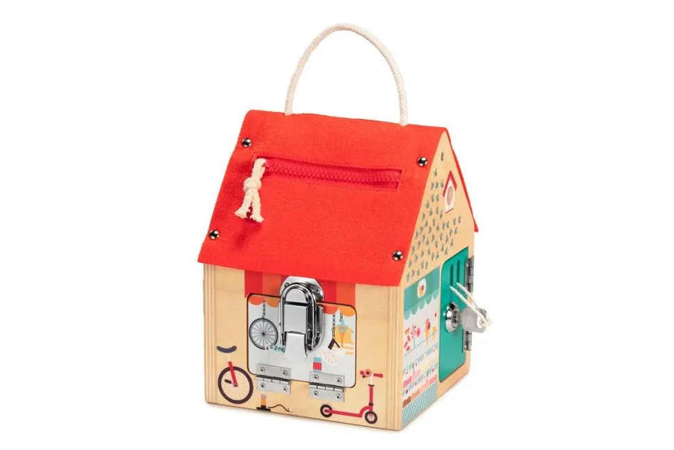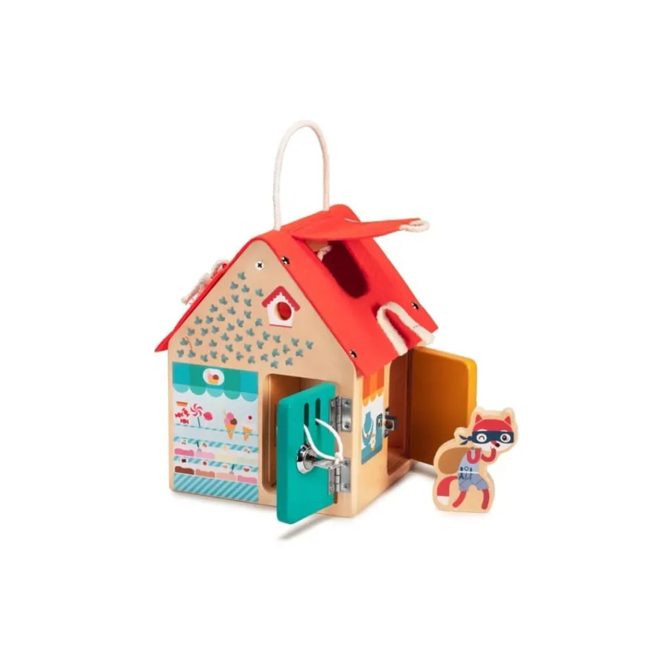 ¿A que bizcochito no le chiflan las cerraduras y llaves? Comprueba rápidamente que todas las puertas y las ventanas de tu casita están bien cerradas. Con esta casa, los pequeños aprenden diferentes sistemas de cierre, lo que estimula su imaginación mientras se divierten.