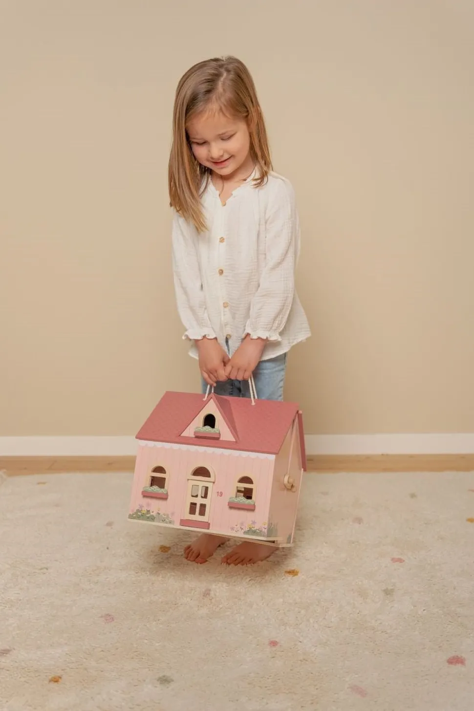 La casa de muñecas de madera portable de Little Dutch es una bonita y acogedora casa rosa con preciosos detalles. La casa tiene una sala de estar, una cocina en la primera planta, una habitación y un baño en la primera planta. Con el cierre de madera, la casa de muñecas se abre y cierra fácilmente y gracias al asa es fácil llevarla a cualquier parte. El mobiliario está incluido. Es perfecta para niños que adoren jugar e imaginar en su propio pequeño mundo