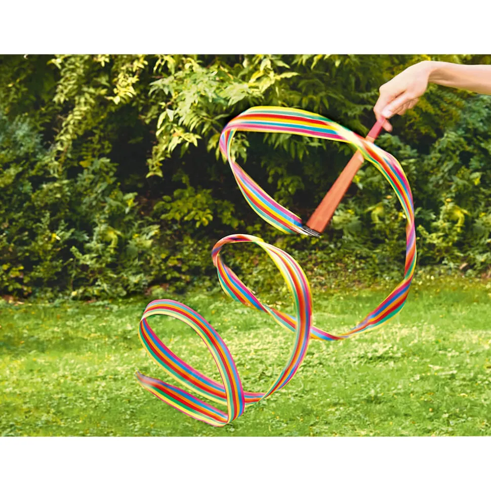 Banda de gimnasia artística con palo de madera para bailar y jugar. Cinta de poliéster satinado y mango de madera.