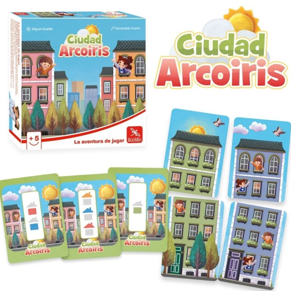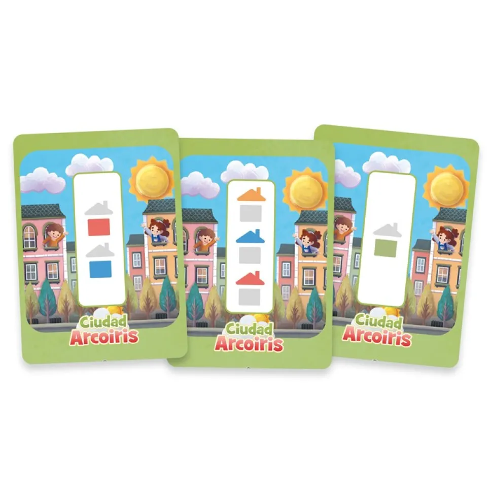 iudad Arco Iris es un juego de mesa para niños en el que tendrás que construir la ciudad más grande y encantadora. Para lograrlo, tendrás que elegir sabiamente entre las tres cartas frente a ti, y completar los edificios de color mientras reúnes la mayor cantidad de elementos. ¿Listo para construir la ciudad de tus sueños?