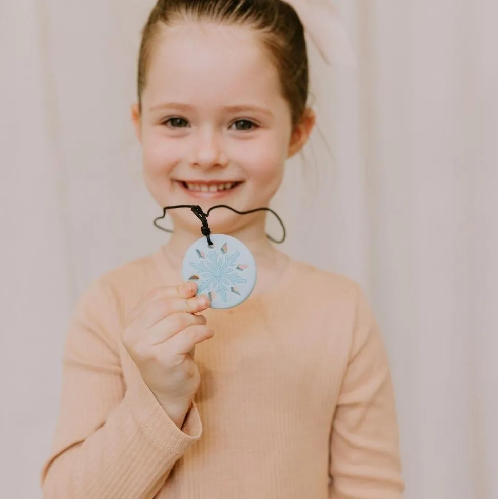 Desarrollada en colaboración con terapeutas ocupacionales, 100% silicona de grado alimentario, sin bpa, sin ftalatos, sin cadmio y sin plomo. Longitud collar: 30 cm aprox.