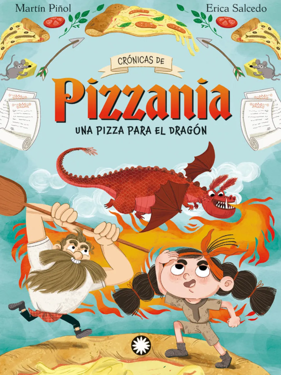 Una pizza para el dragón es el primer título de Crónicas de Pizzania, una nueva serie de narrativa a partir de 8 años repleta de humor y aventuras medievales. Los lectores lo pasarán genial mientras acompañan a Iris y su vecino pizzero, Martinelli, en el gran reto de conseguir que sus pizzas lleguen a tiempo a todos los habitantes del reino, incluido el temible rey Murgus… ¡Y sin que el dragón se las coma por el camino, claro!