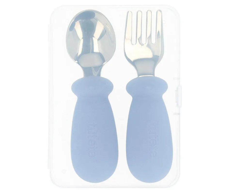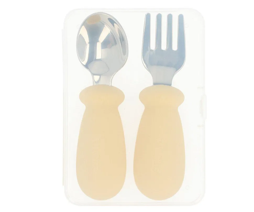 Set de cubiertos formado por 1 tenedor y 1 cuchara perfectos para Baby-led Weaning . Cuentan con mangos ergonómicos redondeados para que los peques los puedan agarrar fácilmente, además son duraderos y con extremidades redondeadas.
