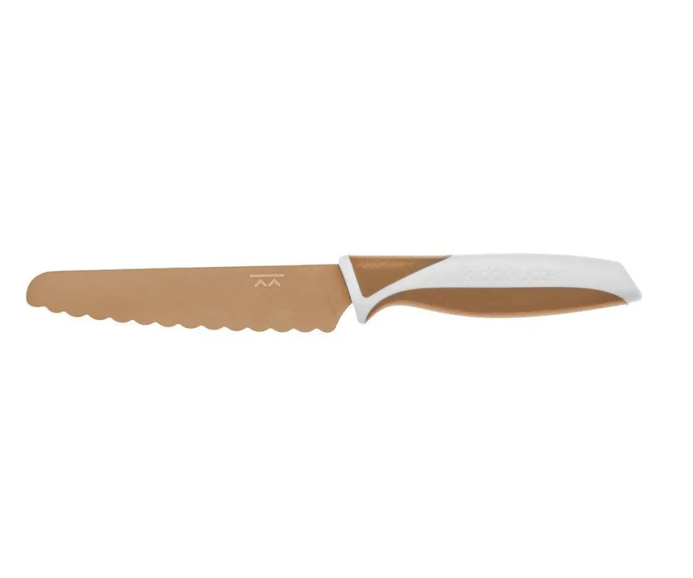 Estos cuchillos están diseñados para niños a partir de los 3 años, para que puedan cortar su comida de forma segura. Cortarán cualquier cosa que un cuchillo afilado pueda cortar, pero no les cortará sus deditos debido a las sierras redondeadas de acero inoxidable. Funcionan con la acción de serrado, pero no corta porque no están afilados.