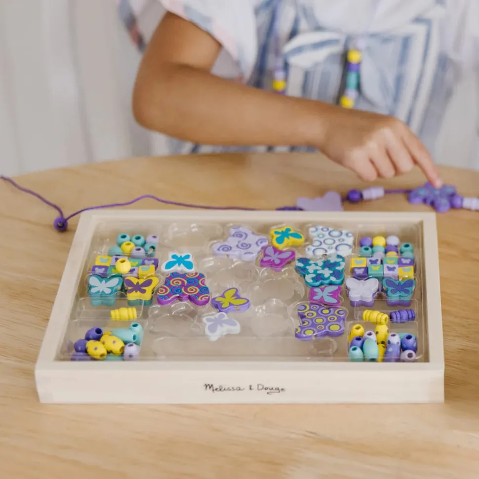 Bandeja de madera para guardar las piezas. La actividad perfecta para ensartar, hacer adornos y diseños Ideal para estimular las habilidades motoras finas, la habilidad de clasificar, de secuenciar y la creatividad