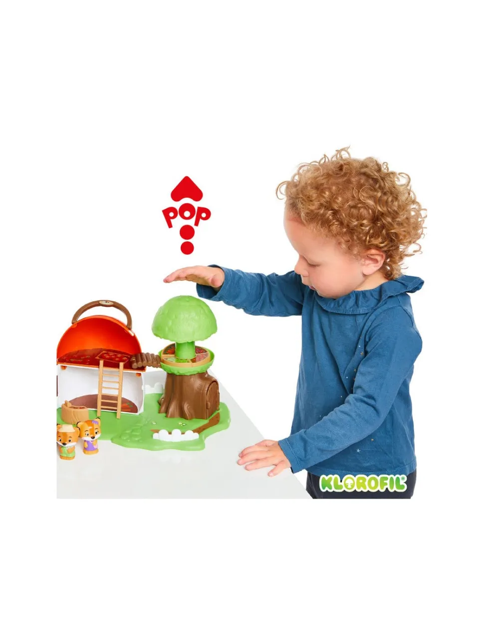 Cuando presionas el arbusto, ¡prepara tus sentidos para el «Pop» mágico! El Champiñón Mágico se abre para revelar una tienda en dos pisos, creando el escenario perfecto para reproducir escenas de la vida cotidiana.
