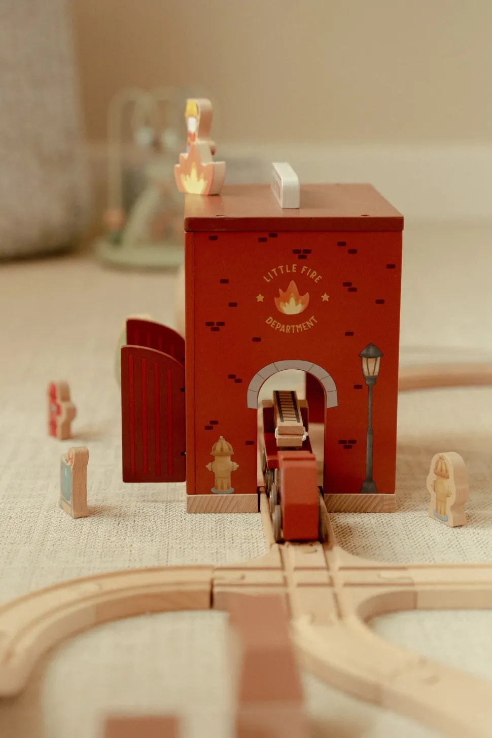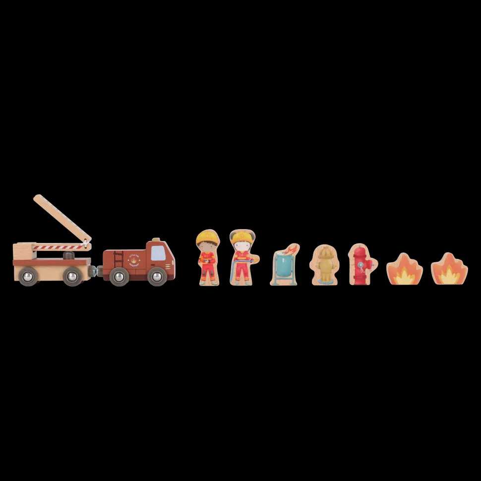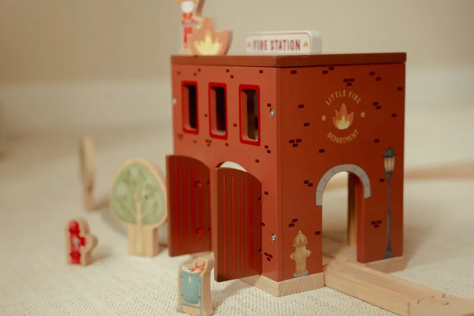 ¡Suena la alarma! Esta estación de bomberos de madera tiene todo lo necesario para una emocionante misión de rescate. Abre las puertas, deslízate por la pértiga y súbete al camión de bomberos. Incluye bomberos, llamas y un cubo de basura en llamas. Las puertas de la estación se abren, lo que permite una salida rápida. Combina este set con el tren de madera XL para vivir aún más aventuras. ¿A quién rescatarás hoy?