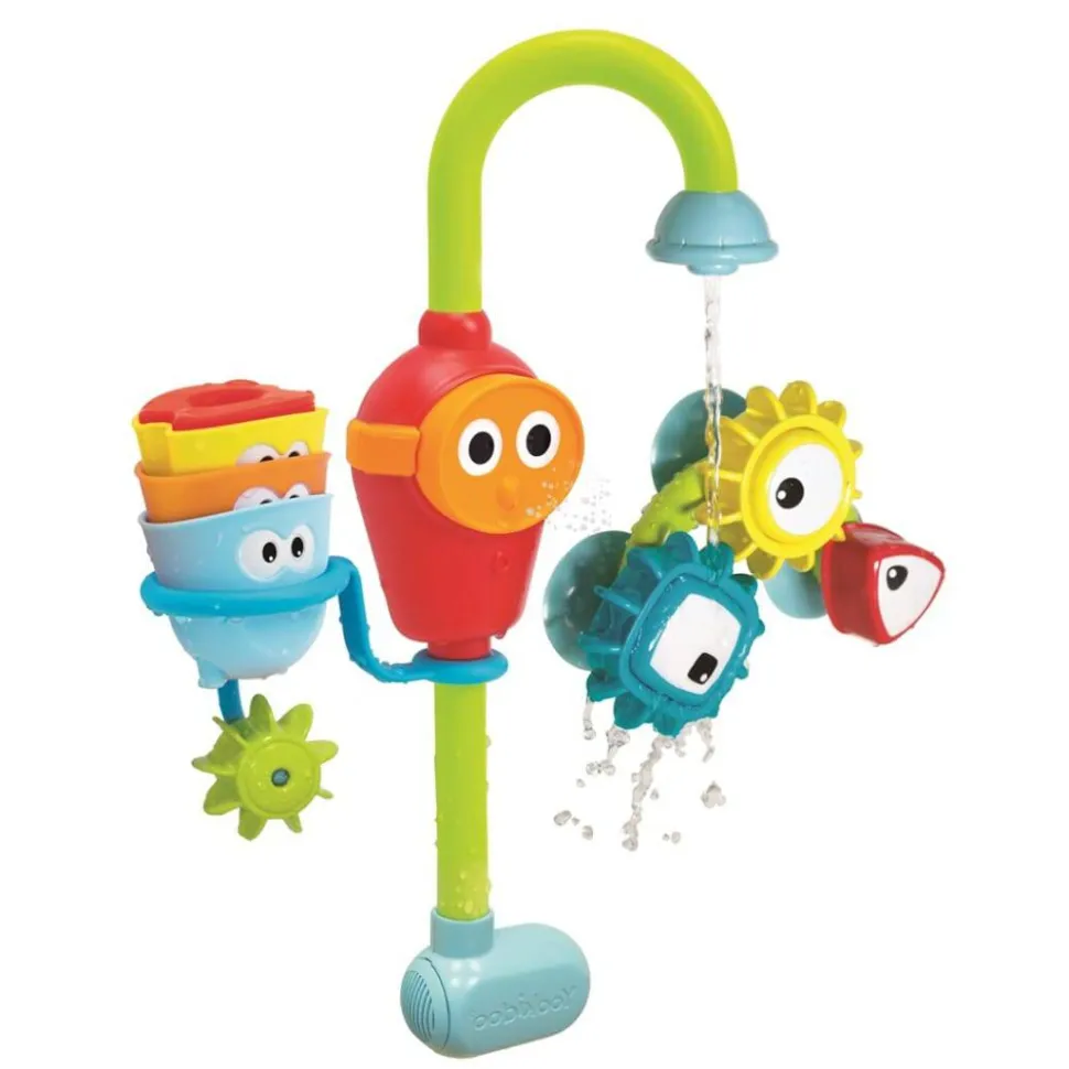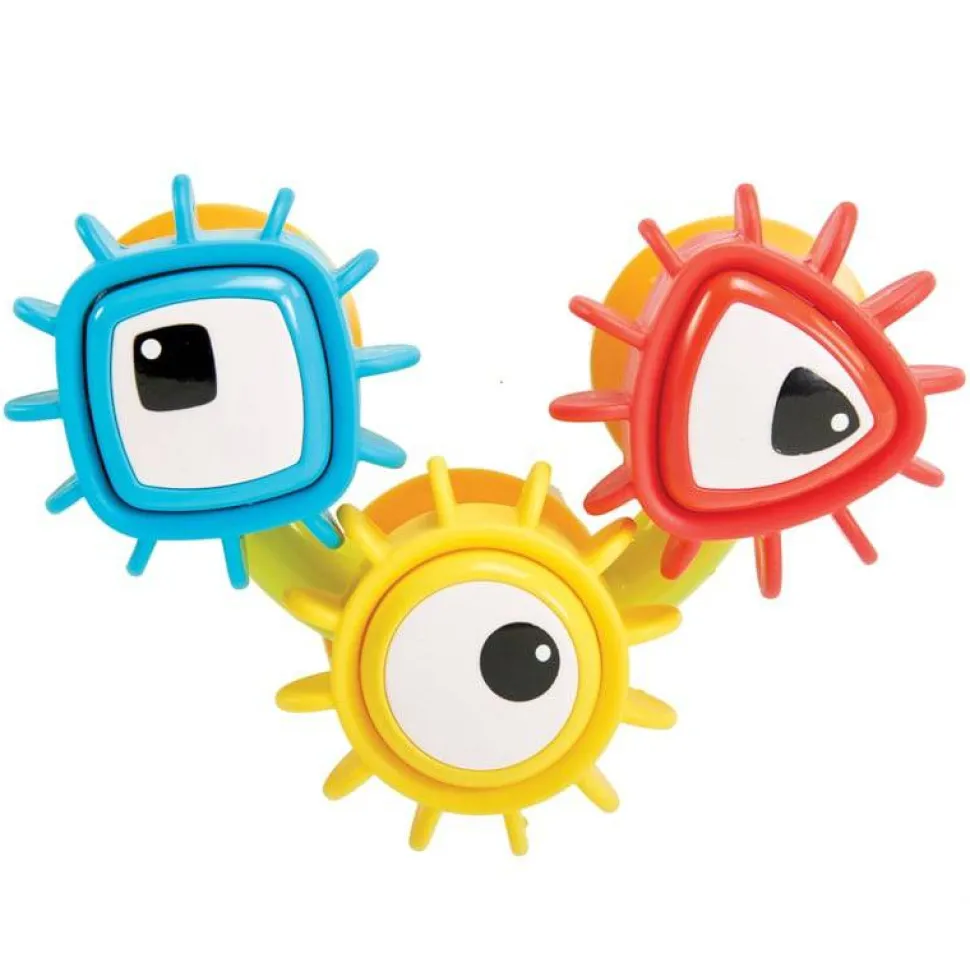 Más de 10 actividades diferentes de agua. Encaja formas y colores y coloca las diferentes formas en el lugar correcto para ver girar todos los engranajes a la vez. 3 vasitos intercambiables, cada uno con un efecto de agua diferente.