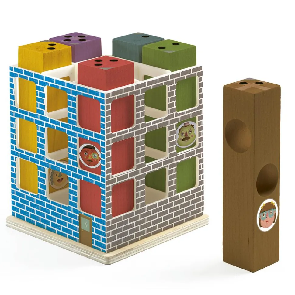 ¡Bienvenidos al mejor hotel del mundo! Observa las tarjetas de desafío y los clientes que aparecen en ellas: deberás acomodarlos en la habitación que se indica, combinando las piezas en el tablero para que cada uno esté en la habitación escogida, ¡todo un reto para tus neuronas!