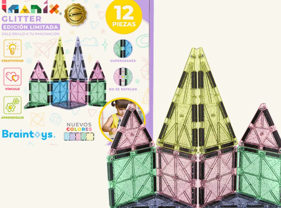 ¡Ponle más brillo! Imanix Glitter está pensado especialmente para incorporar una pizca de alegría y carácter a las formas 2D y 3D de tu juego de construcción.