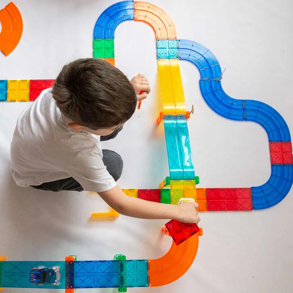 Crea tu pista, compleméntala y llévala al siguiente nivel con inéditas piezas! Este novedoso set temático permite crear una gran Pista de Carreras, además de expandir las versiones anteriores.
