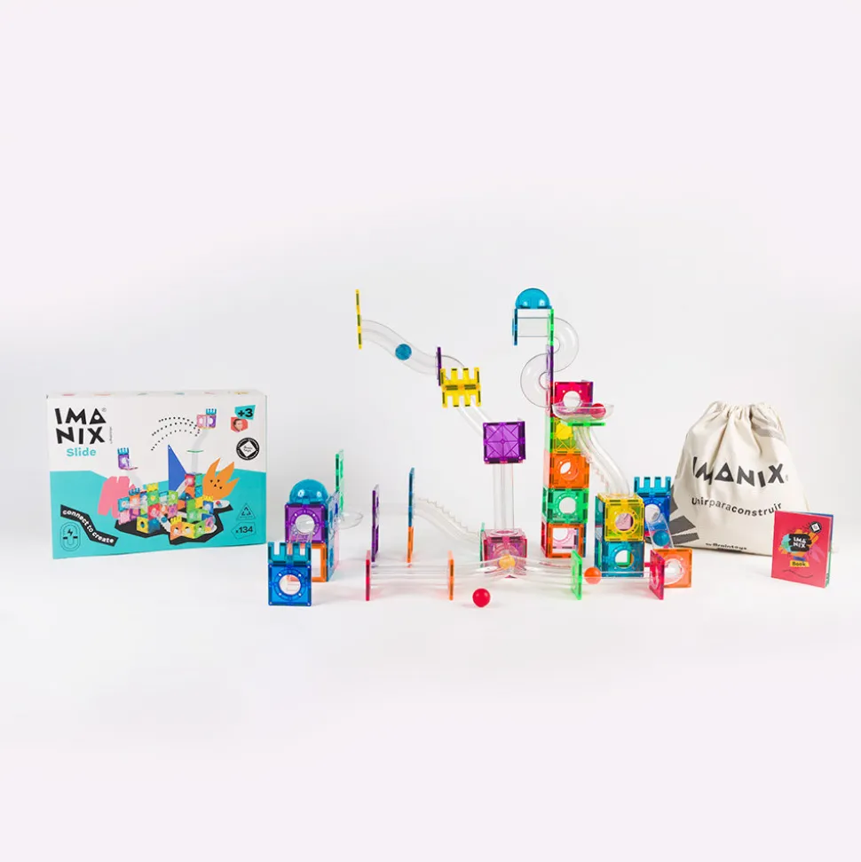 Imanix es uno de los juguetes que más gusta a los bizcochitos y bizcochitas. Miles de ellos ya han jugado y siguen juguando con ellos. Los Imanix Tobogán de 134 piezas son una opción ideal para aquellos que ya han jugado con Imanix y quieren seguir disfrutando del juego libre con más piezas y formas de juego.
