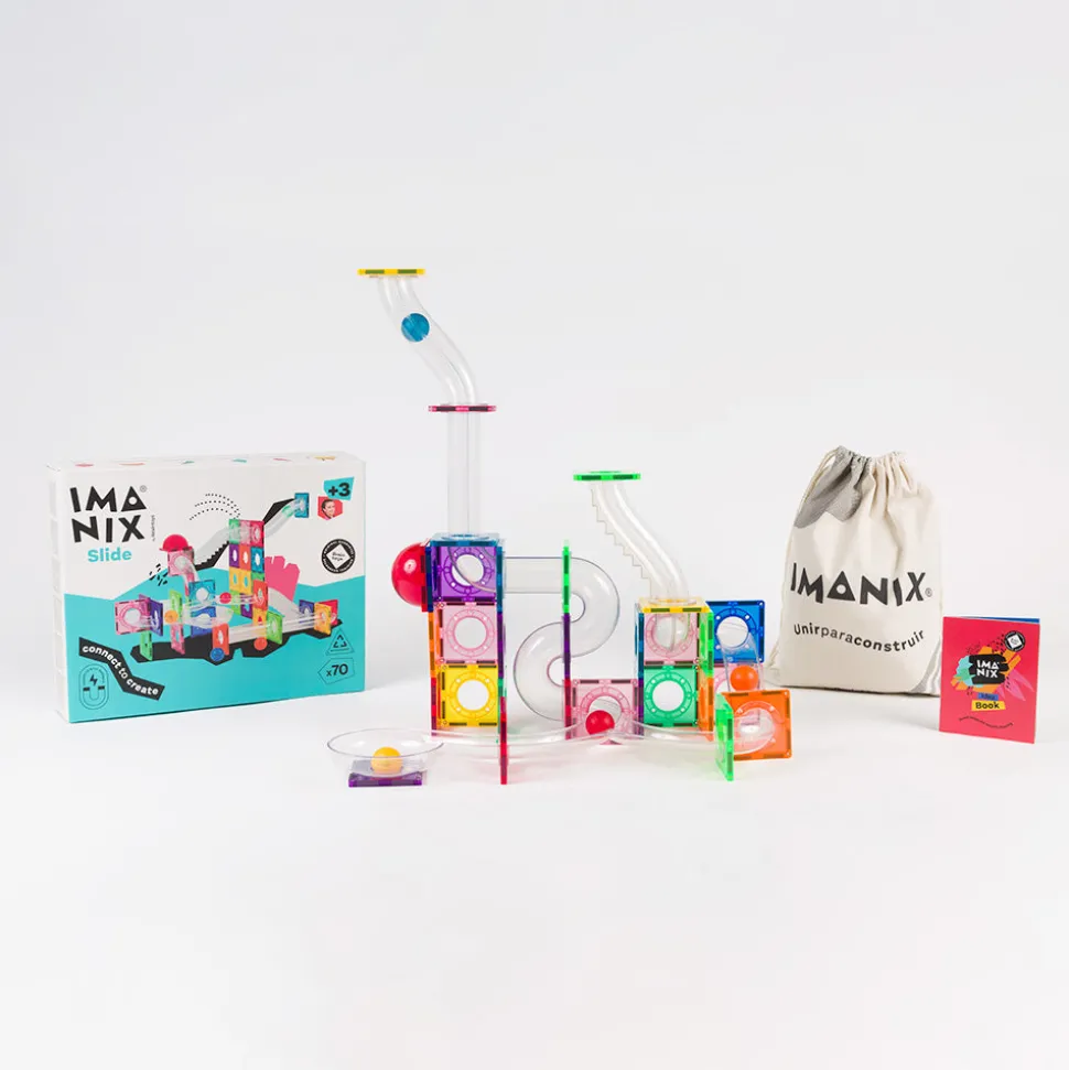 Imanix es uno de los juguetes que más gusta a los bizcochitos y bizcochitas. Miles de ellos ya han jugado y siguen juguando con ellos. Estos Imanix Tobogán de 70 piezas son una opción ideal para aquellos que ya han jugado con Imanix y quieren seguir disfrutando del juego libre con más piezas y formas de juego.