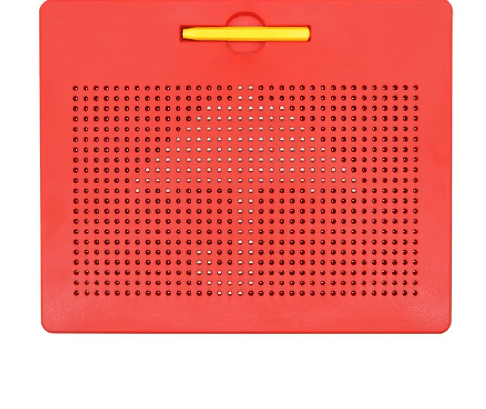 Tablero compuesto por pequeñas pelotitas imantadas que suben a la superficie gracias al poder del lápiz magnético que permite formar figuras y diseños en 2D.