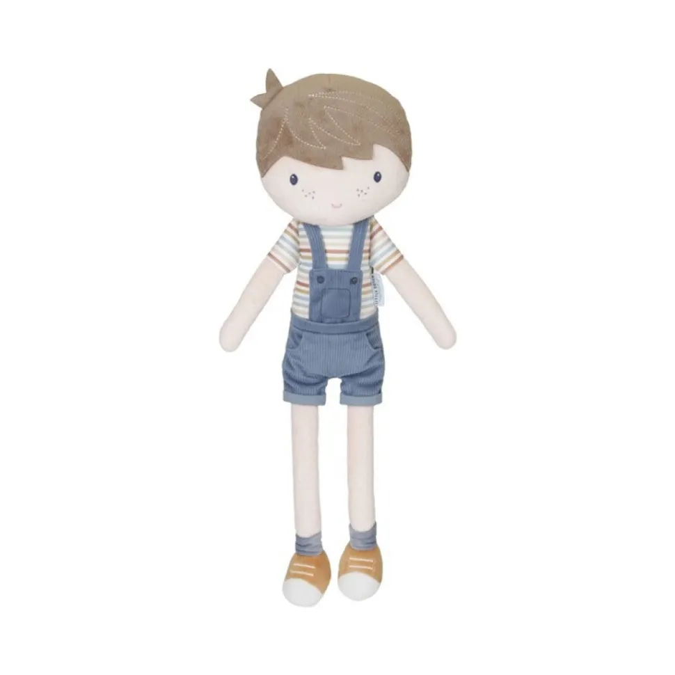 Jim, el lindo muñeco de peluche de felpa, es suave y encantador para abrazarlo. Lleva mono de pana. Jim puede sentarse y le gusta ir contigo en el cochecito de muñecas de madera Little Dutch.