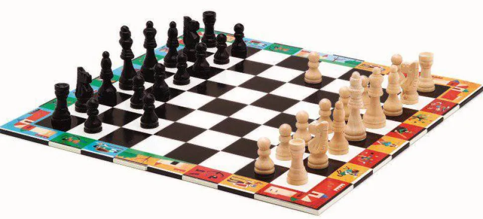 Un maletín con un juego de ajedrez y otro de damas con piezas de madera y un cuadernillo de iniciación. 2 juegos clásicos e imprescindibles en 1. Todo en un bonito maletín ilustrado para guardar y transportar los juegos.