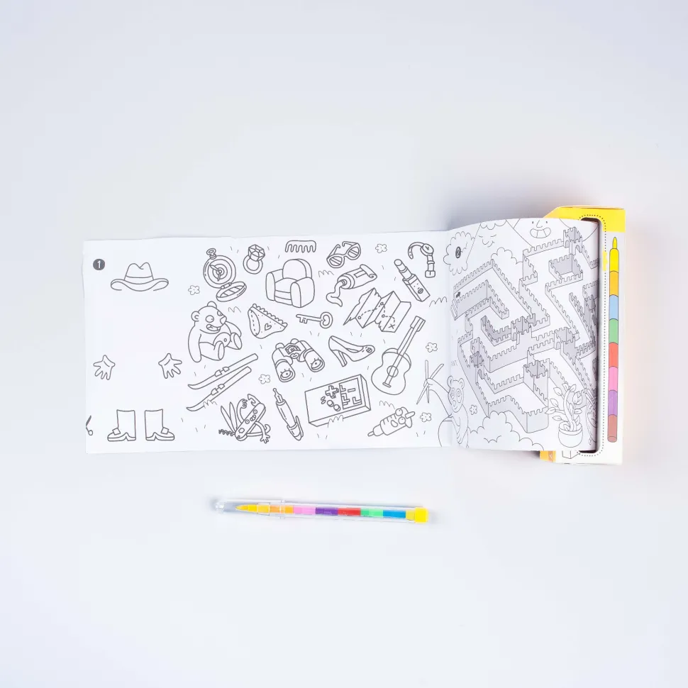 Juego de bolsillo para colorear Atlas+8 pinturas · OMY