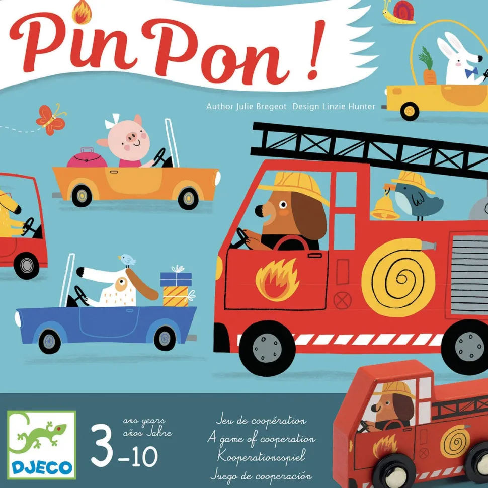 Contenido: 12 fichas de coches/carretera despejada, 1 parque de bomberos, 1 casa, 7 fichas de fuego, 1 camión de bomberos y 1 dado de madera. Reglas del juego en 10 idiomas.