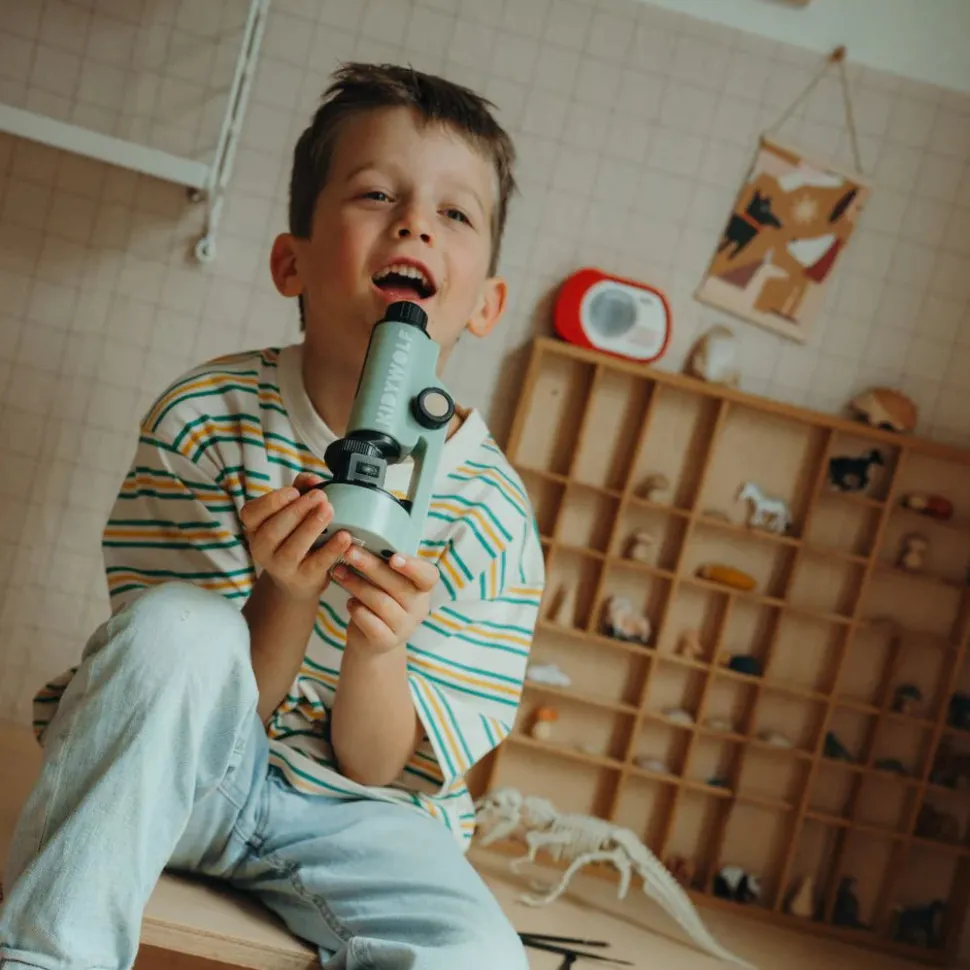 Descubre el fascinante mundo de lo invisible con el microscopio portátil KIDYMICROSCOPE, diseñado especialmente para despertar la curiosidad científica de los niños y niñas. Con tres niveles de aumento (50x, 150x y 300x) e iluminación adaptable, este microscopio permite examinar con claridad desde la textura de una hoja hasta los detalles más finos de una pluma. Compacto, fácil de usar y pensado para acompañar a los pequeños en sus aventuras científicas, convierte la exploración del mundo microscópico en una experiencia educativa cautivadora.