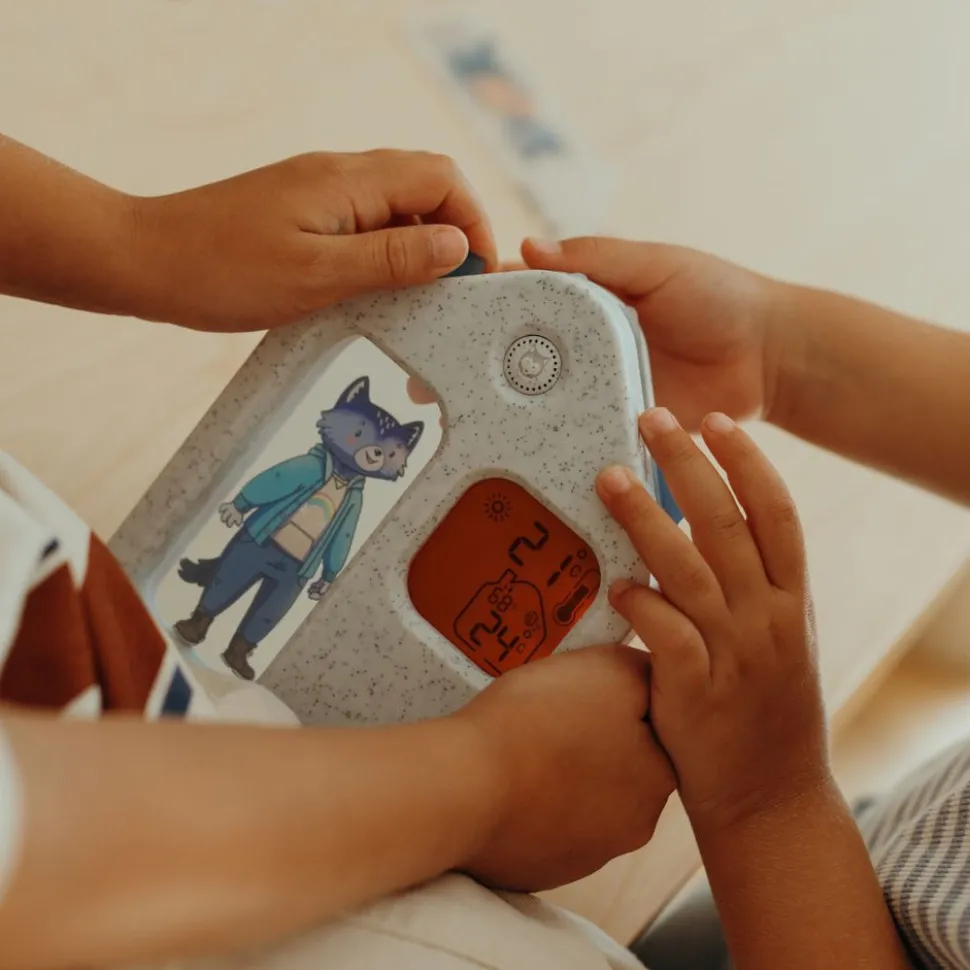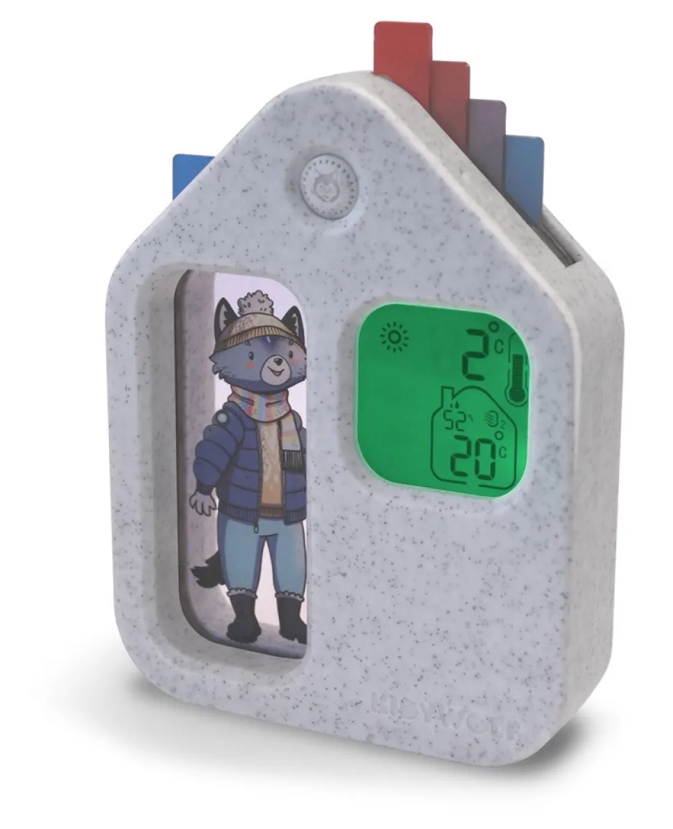 Convierte las mañanas en una divertida aventura con KIDYWEATHER, la estación meteorológica educativa que ayuda a tu hijo a entender el tiempo mientras elige su ropa para el día.