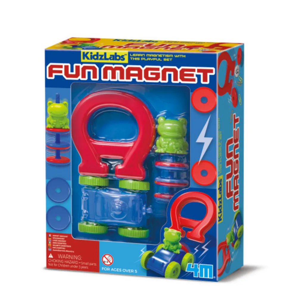 El kit Fun Magnet de Kidzlabs incluye un potente imán en forma de herradura para experimentar con las fuerzas magnéticas, junto con versátiles imanes en forma de anillo para realizar diversos experimentos prácticos. Una rana saltarina permite a los niños aprender sobre el magnetismo de forma divertida, mientras que el corredor ayuda a explorar el movimiento y el magnetismo en una pista, mejorando la experiencia global. La varita mágica incluida añade un toque encantador a los experimentos, haciéndolos aún más atractivos. Este kit fomenta el aprendizaje STEM introduciendo conceptos fundamentales del magnetismo a través del juego, mejora el pensamiento crítico cuando los niños realizan experimentos y mejora la motricidad fina cuando manipulan los imanes y preparan las actividades.