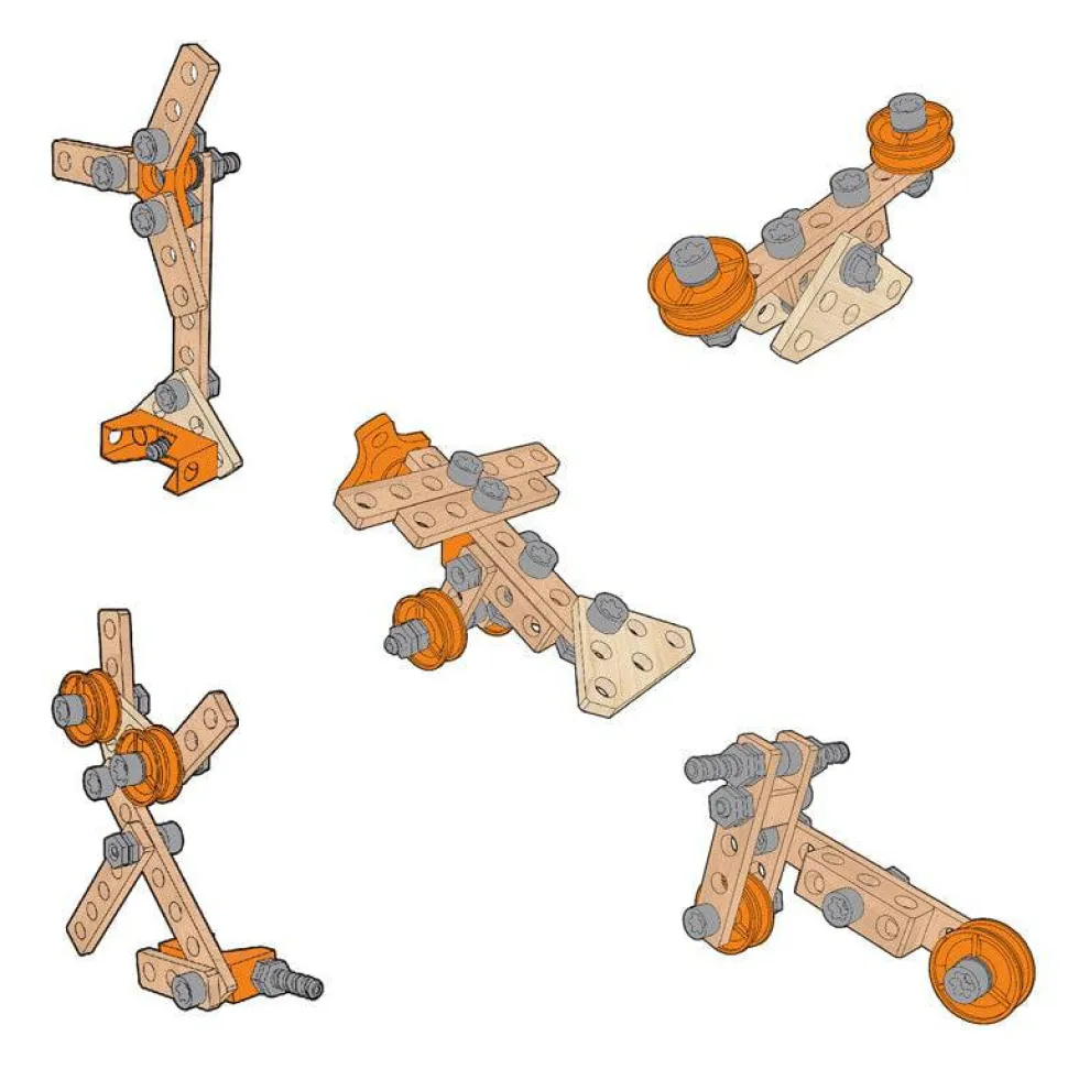 Incluye piezas y herramientas fáciles de usar, así como proyectos de inspiración para comenzar. Compatible con otros juegos de Inventor Júnior.