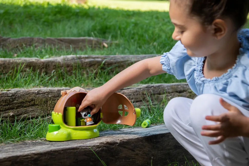 Incluido con la Casa en Forma de Avellana está Ella, miembro de la adorable familia Racoon. Ella y sus amigos se convertirán en los compañeros perfectos para las aventuras imaginativas de los niños dentro de la casa.