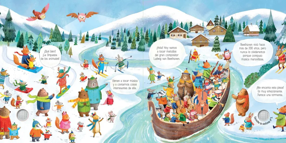 Al apretar los botones incorporados en las páginas, la Orquesta de los animales interpreta piezas de Beethoven. Una magnífica introducción a la música de este famoso compositor, con detalladas ilustraciones e interesante información sobre el personaje y su obra.