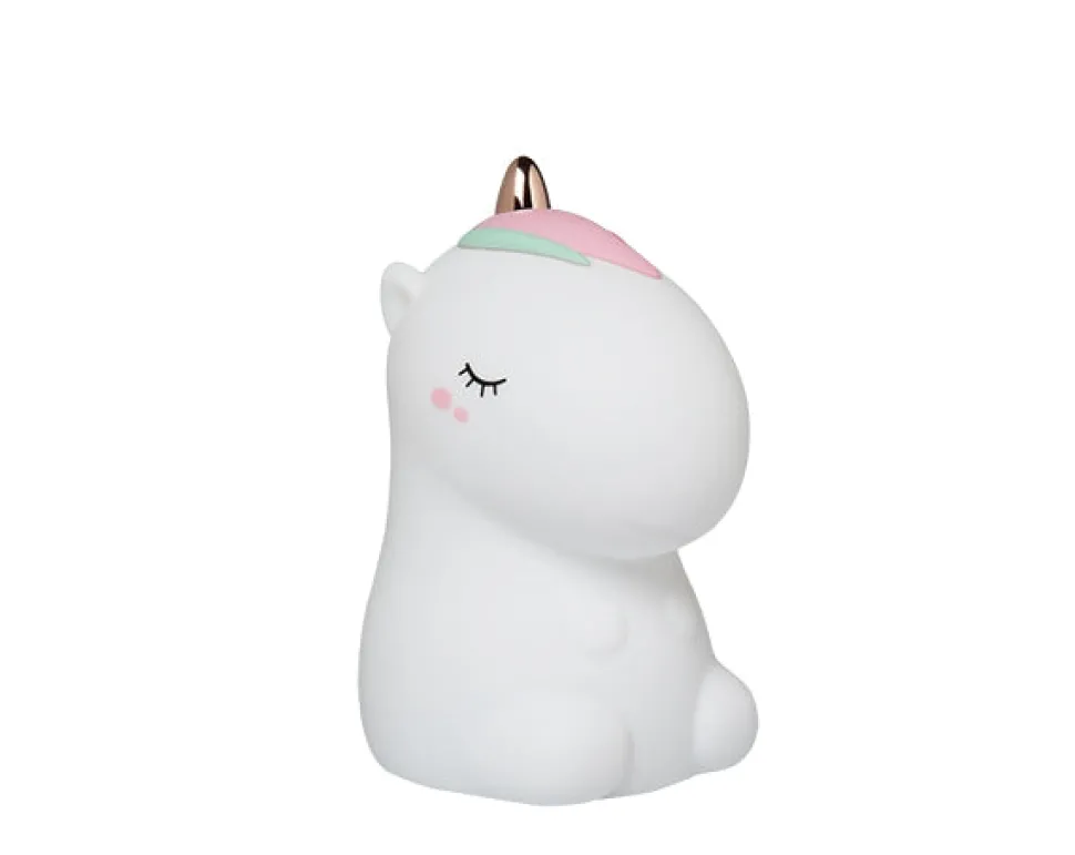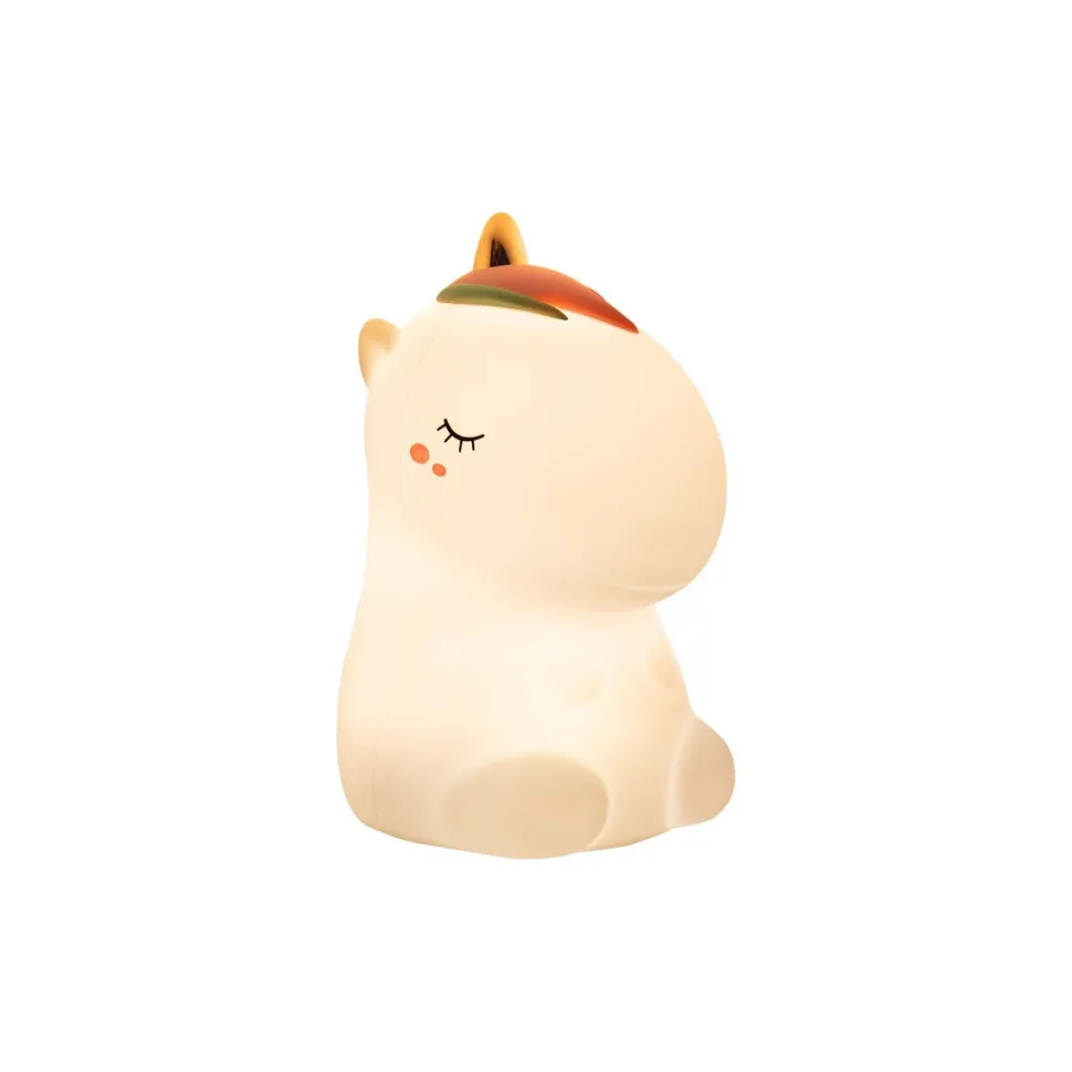 Una lamparita de noche suave y recargable para iluminar la habitación de los más pequeños. Es táctil y con mando a distancia con distintos efectos de luz. Tiene cuatro efectos de luz: blanca suave, blanca intensa, de color fija y de colores cambiantes. El último efecto de luz de colores se activa después del último color fijo. Cargador incluido. La duración de la iluminación es de 6 a 20h según el según el efecto elegido