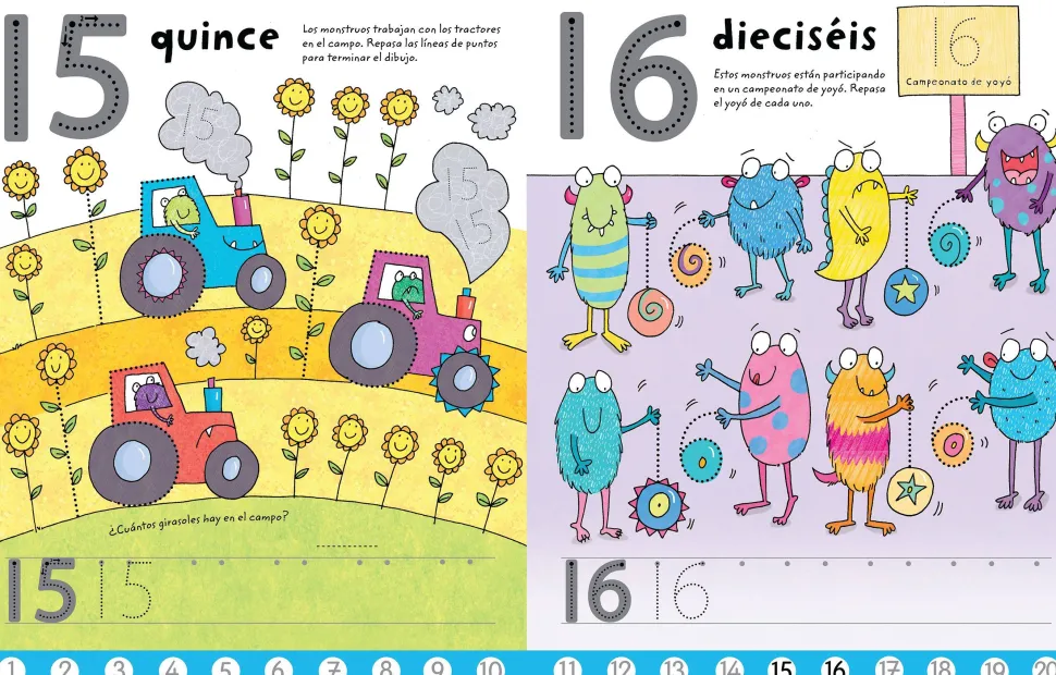 Con este título de la colección educativa “Libros pizarra” de Usborne, creada para ayudar a los niños de edad preescolar a adquirir habilidades esenciales, los pequeños aprenderán a controlar el rotulador y se familiarizarán con los números en la fase previa a la escritura.