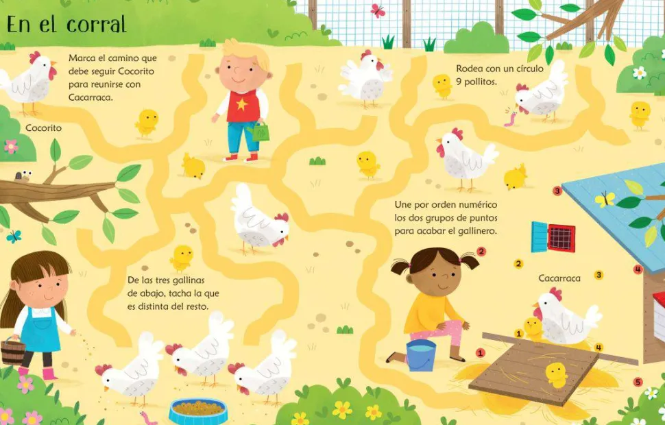 Un libro pizarra con actividades inspiradas en la estación de la primavera como laberintos, unir con puntos, encontrar las diferencias o trazar los números con el rotulador de tinta borrable incorporado.