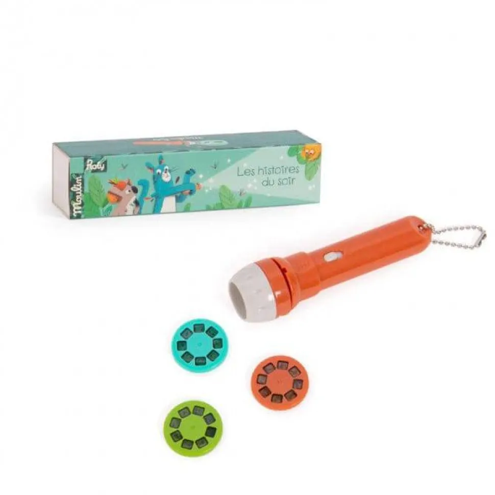 Contiene 1 linterna y 3 discos de historias.