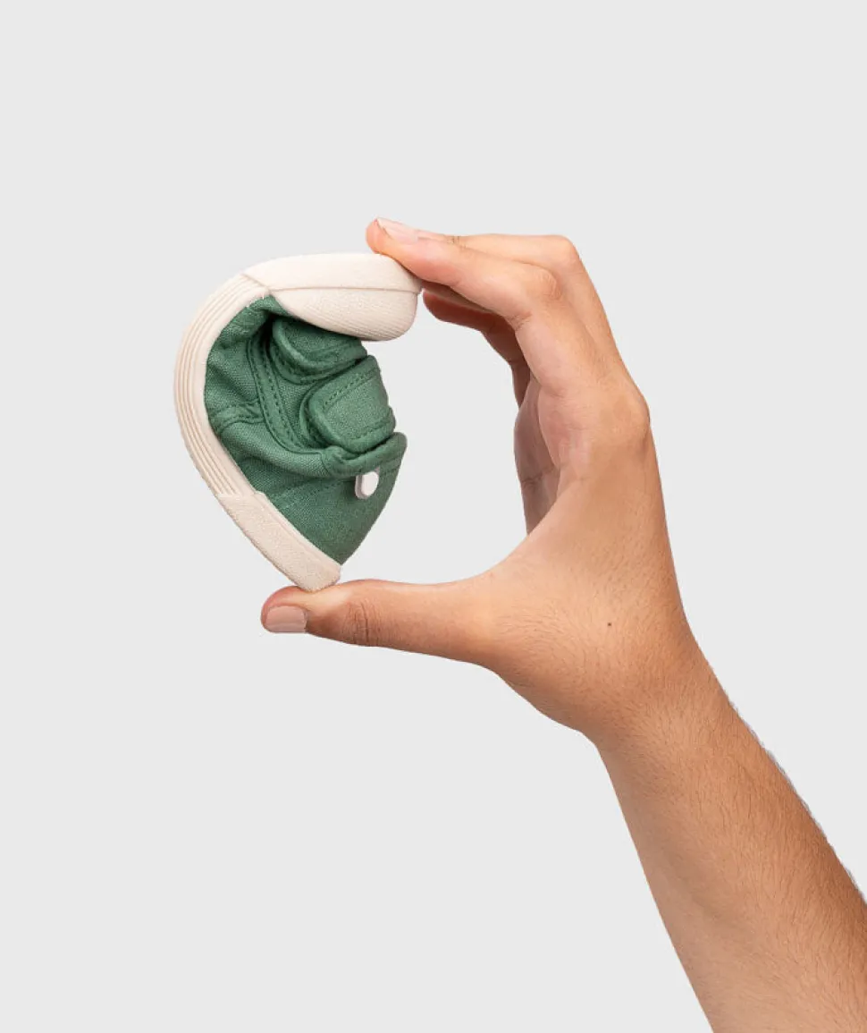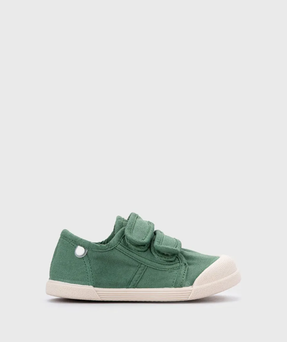 Zapatilla de lona con doble cierre adherente 100% algodón, de concepto barefoot, cero drop, flexible, blandita y con plantilla extraíble.