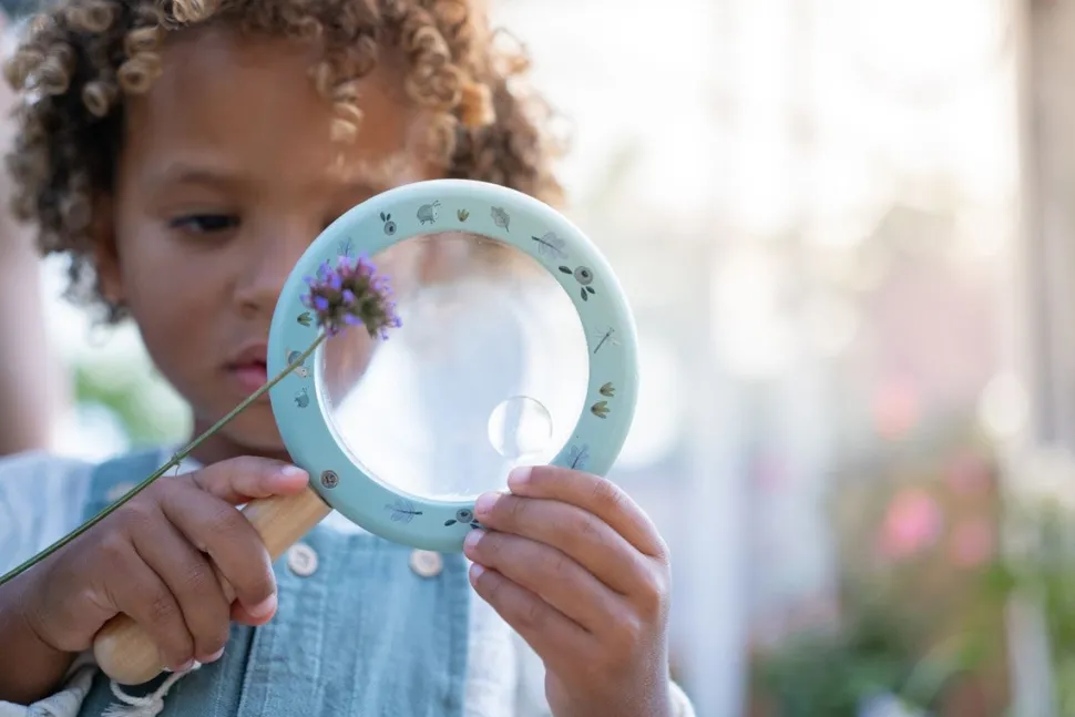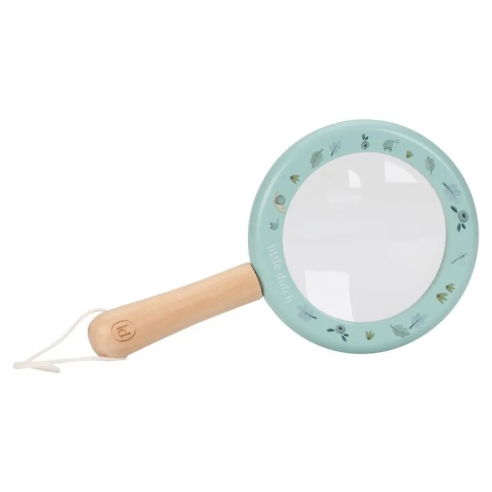 ¡Explora la naturaleza con esta lupa con forma de flor! El resistente marco de madera y el mango garantizan un agarre cómodo, mientras que las bonitas ilustraciones de la temática del jardín de hadas añaden un toque divertido. La lupa cuenta con una lente extra pequeña integrada para una visualización aún más detallada. Con un práctico cordón para colgarla, siempre está al alcance de los exploradores curiosos. Perfecta para los pequeños aventureros que quieren explorar el mundo que los rodea y rastrear pequeñas criaturas