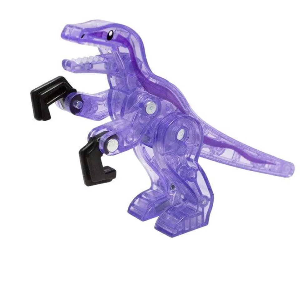 - 4 figuras dinosaurios: Pteranodón (Azul), Tiranosaurio-Rex (Rojo), Stegosaurio (Verde) and Velociraptor (Violeta)
