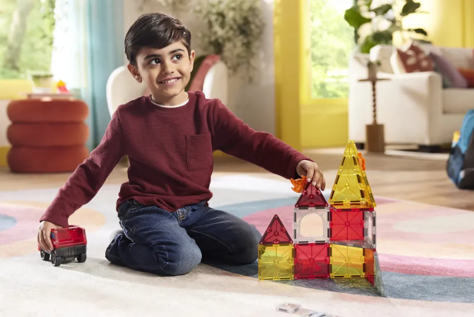 ¡Embárcate en emocionantes misiones de extinción de incendios con MAGNA-TILES Fire Rescue! Envía el coche y la figura del jefe de bomberos a la acción a toda velocidad con el chasis Pullback. Mejora la acción con baldosas de fuego realistas para derribar y escaleras para subir, llegando a cada incendio en el último momento. Diseñado para despertar la creatividad y fomentar el juego imaginativo, MAGNA-TILES Fire Rescue complementa el set Fire Station para operaciones de rescate aún más dramáticas. Juntos, los sets Fire Rescue y Fire Station convierten tu ciudad MAGNA-TILES en un centro de trabajo en equipo, emoción y heroísmo. ¿Quién está listo para responder a la llamada y salvar el día?